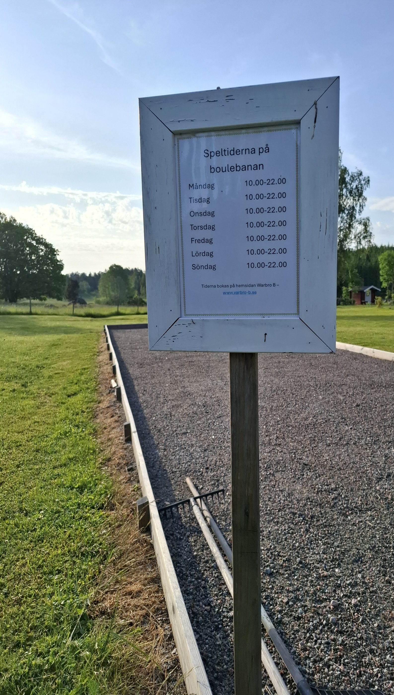 Jonas, Penka och döttrarna har rengjort boulebanan från ogräset. Speltiderna är kl. 10.00-22.00 (mån - sön) och tiderna bokas på hemsidan.
